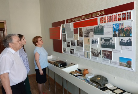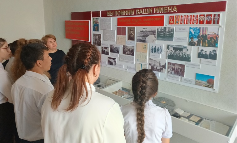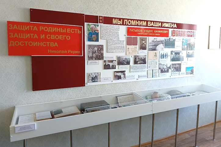 | 3. | Создание экспозиции | 1.«Родина в опасности» 2.«Блокада Ленинграда» 3.«Башкортостан в годы Великой Отечественной войны» 4.«Бессмертный полк» 5.«112 Башкирская кавалерийская дивизия» 6.«У войны неженское лицо» 7.«Геноцид: история и современность» 8.«Освобождение» 9.«Блиндаж» 10.«Победа» 11.«Награды Второй мировой войны» 12.«Мы помним ваши имена» — Латыпов Куддус Канифович, Герой Советского Союза |