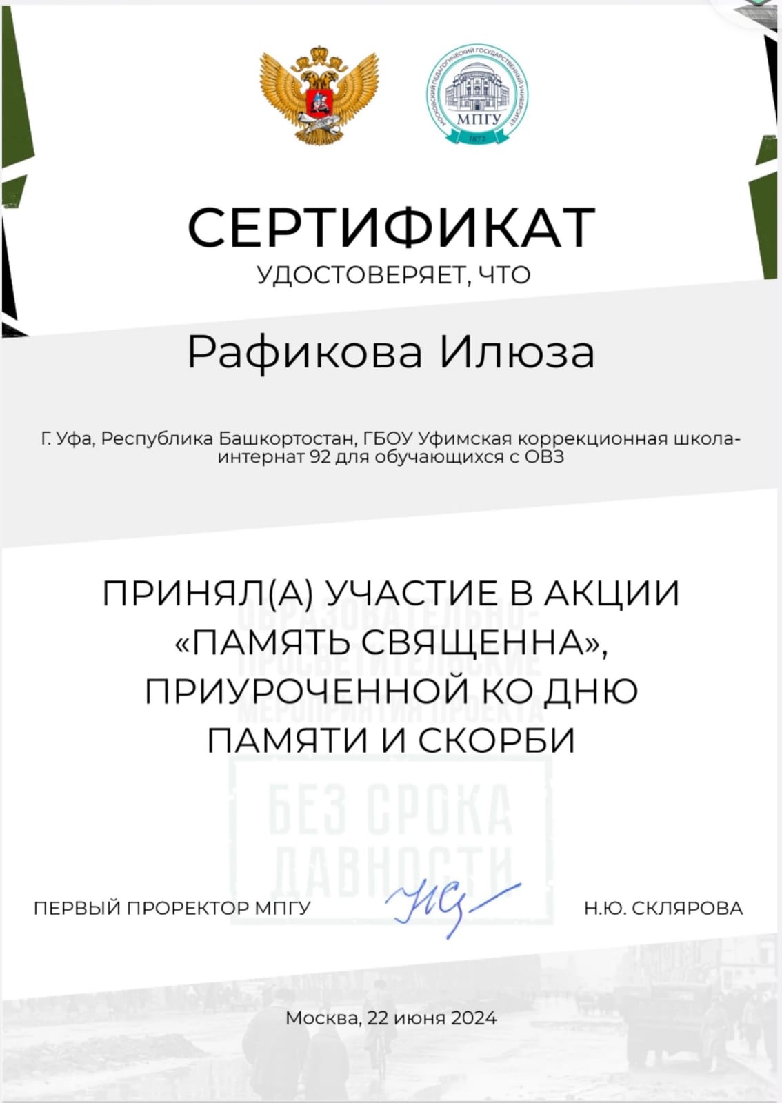 17 июня 2024 г. учителя школы приняли участие во Всероссийской акции «Память священна», приуроченной ко Дню памяти и скорби.