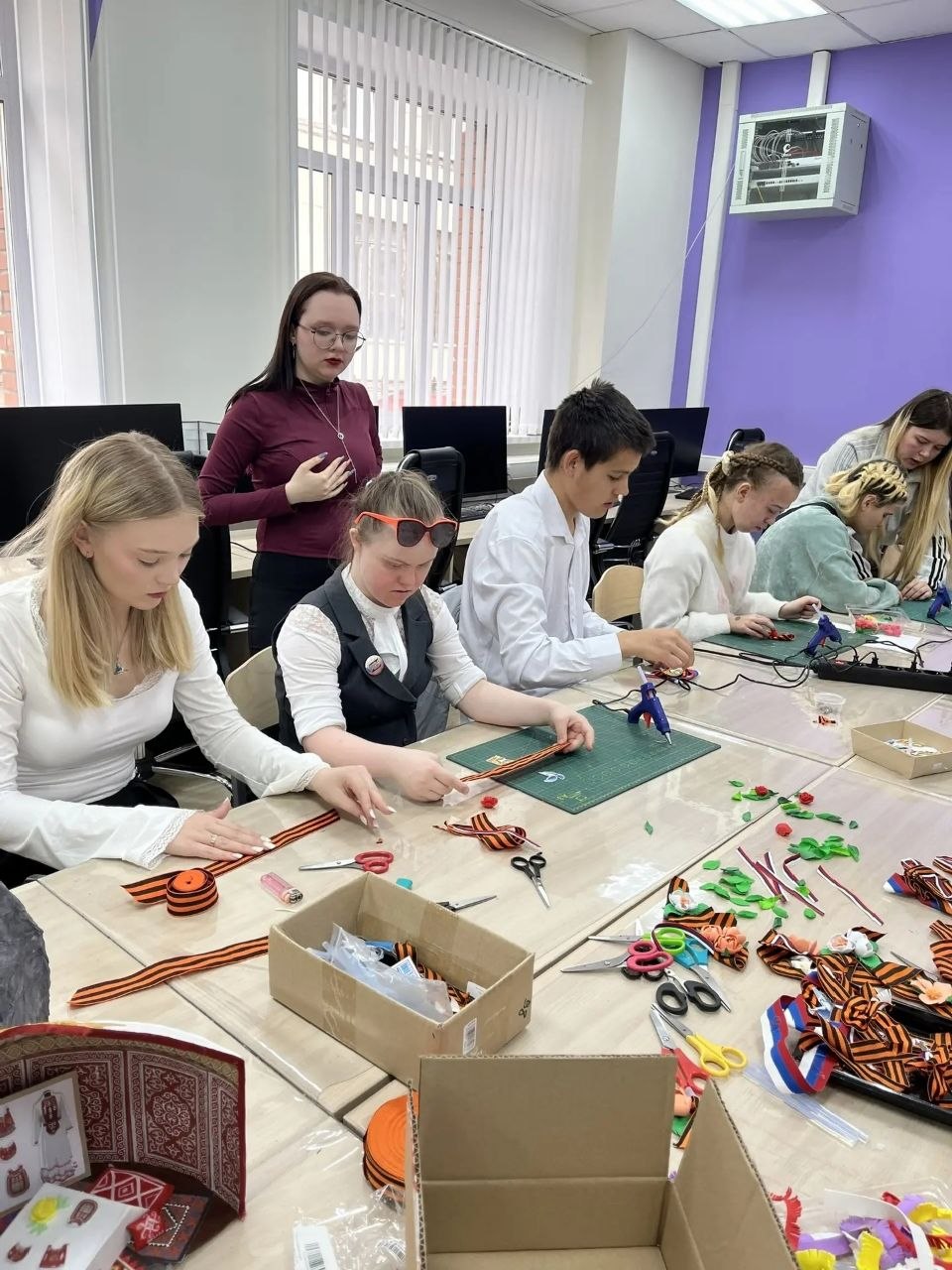 Георгиевская лента — это не просто символ, а знак памяти, мужества и уважения к подвигу наших предков. Под руководством опытных мастеров учащиеся своими руками создавали памятные броши, вкладывая в каждую деталь тепло и благодарность.